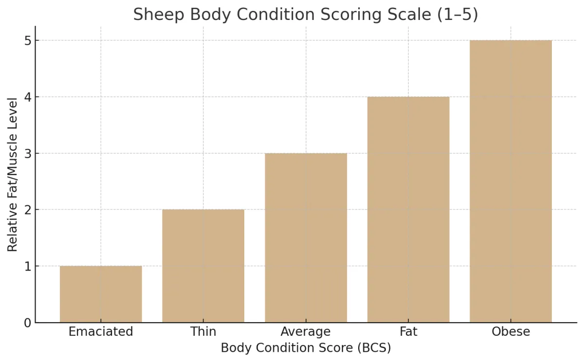 The sheep BCS system uses a 1-to-5 point scale, with half-point increments allowed for precision: