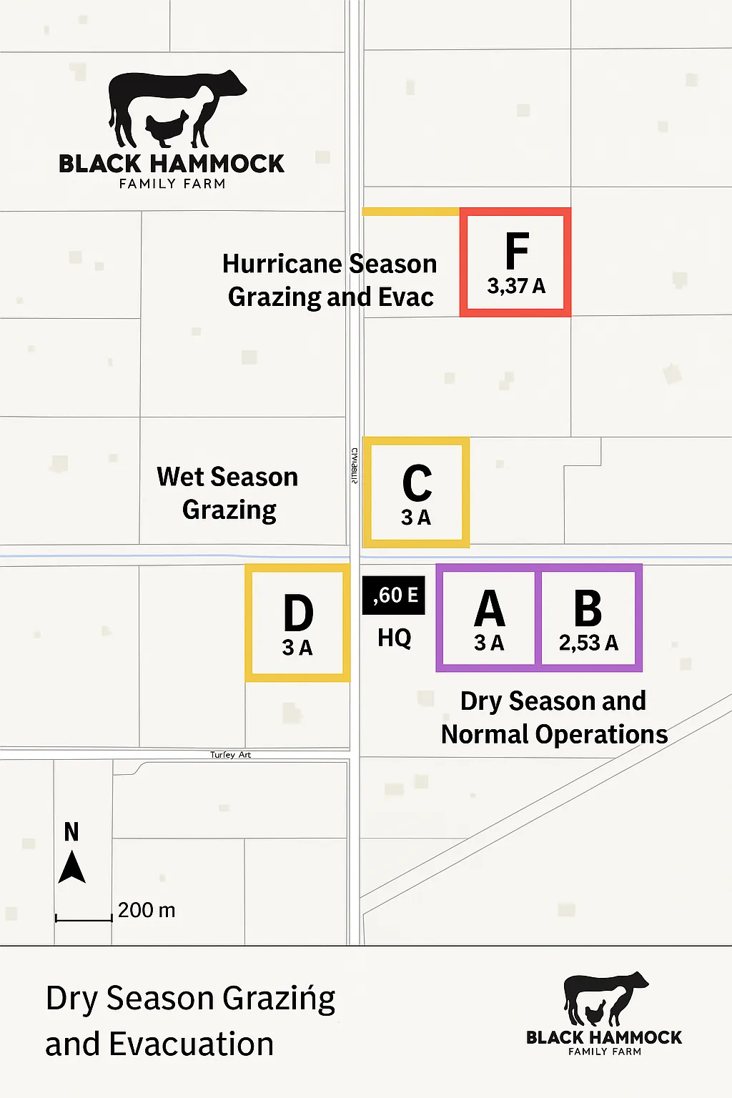 • Pasture F: 3.37 acres - Hurricane Season Grazing and Evacuation